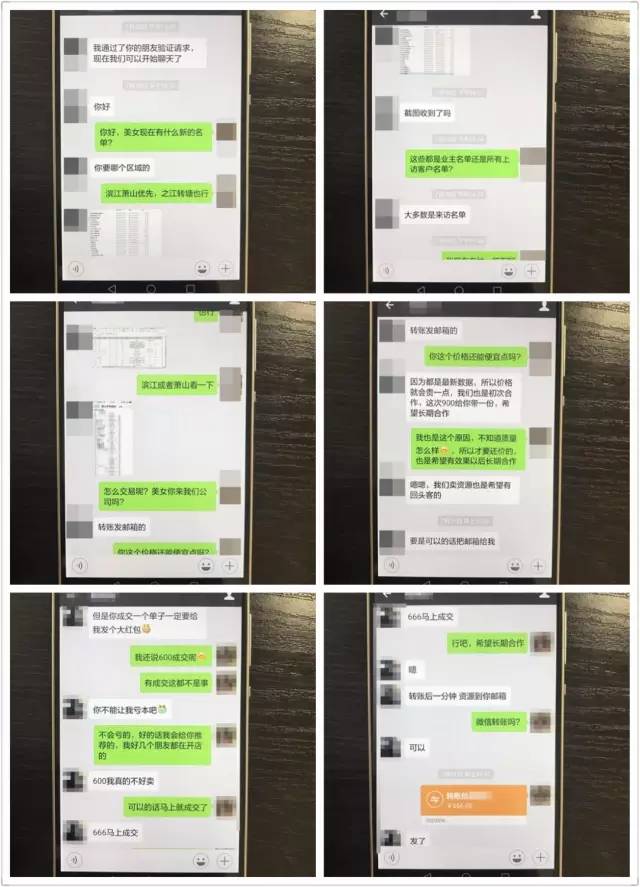 其中小王今年刚20岁,在杭州一家房产中介工作,2016年6月,小王在微信群里看到了毛某发布的广告信息,好奇之下以700元的价格向毛某购买了信息,打开后发现里面果真有大量的客户信息。除此之外,从毛某处购买信息后又再次转卖的人也不在少数。