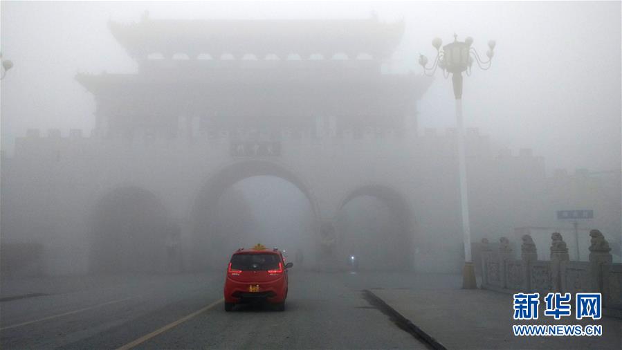 2017年1月3日,河南汝南县城被大雾笼罩。新华社发(孙凯 摄)