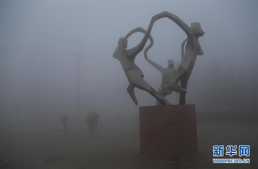 2017年1月3日,江苏连云港赣榆区市民在大雾中出行。新华社发(邵世新 摄)