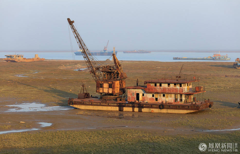 鄱阳湖枯竭 大型船只撤离不及被困湖底