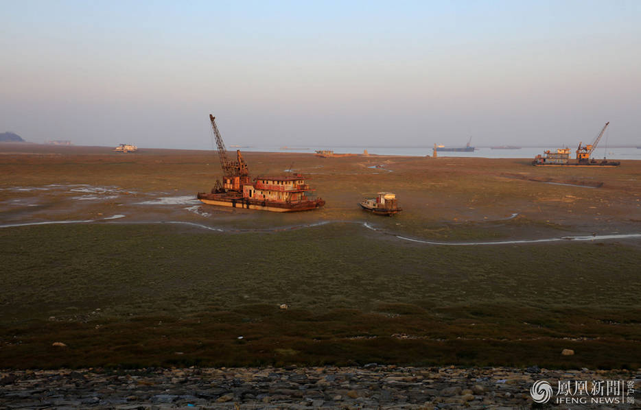 鄱阳湖枯竭 大型船只撤离不及被困湖底