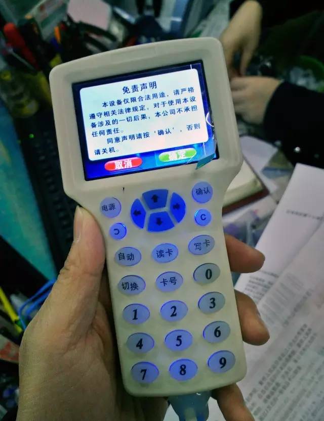 △门禁卡复制器开机后出现一段免责申明 图/视觉中国