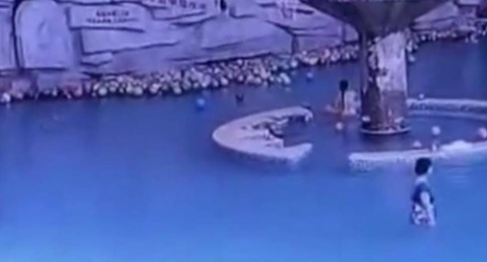 肖女士的朋友说:“当时他妈带孩子在这里游泳,一会儿没看到孩子,然后她就找服务员一起找,就找到孩子从水里捞出来了。”尽管事发后120的救护人员第一时间就赶到了现场,对孩子进行救治。但是医护人员依然没能够挽回这个幼小的生命。图为孩子母亲没看见儿子,四处走动寻找。