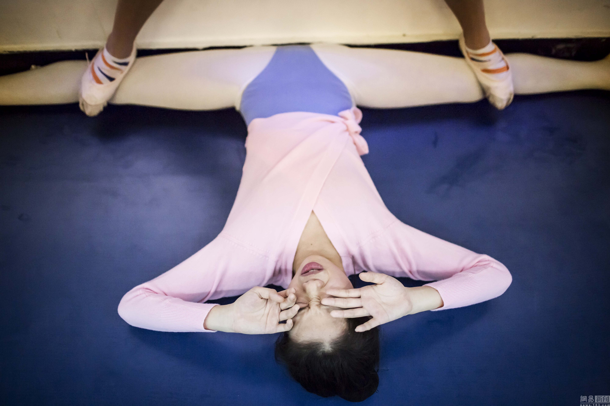蕴芝妈妈忙碌着帮孩子们盘发,这是芭蕾舞课前的必要工作。花泳队就像一个大家庭,谁的家长有空都会主动做一些帮助集体的事情,开始上课后她就在一旁静静地注视着女儿。要练好水上芭蕾,陆地上的舞蹈、力量、耐力、柔韧性等各种身体训练是基本功。蕴芝的每一次“开、绷、直、立”时的用尽全力,每一次下腰、倒立时的挣扎,都尽收妈妈的眼底。看着孩子在镜子前把腰背折成180°时疼得“吧嗒吧嗒”掉眼泪,蕴芝妈妈心里虽然心疼,但脸上却不动声色。芭蕾课上,小队员在进行柔韧训练,此项训练对于小队员做水下动作时关节的开度有帮助。图/视觉中国
