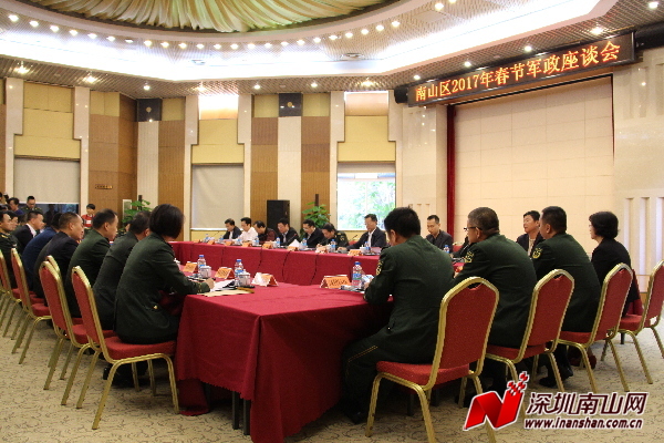 会上,南山区副区长谢炳文向各驻区部队领导介绍南山区经济社会发展基本情况及开展双拥工作情况。南山区委书记姜建军在会上指出,正因为有驻地部队这一坚强后盾,南山经济社会才能保持平稳健康快速发展,驻区各部队以支援南山经济建设和服务社会发展为己任,立足本职、主动作为,出色完成了一系列急难险重任务,赢得了地方和市民群众的高度赞誉。2016年,南山区再获“省双拥模范区”称号,实现“五连冠”目标,浪陀拥军基金会会长关炜楠获评“全国爱国拥军模范”。深圳警备区首长对南山区双拥工作给予充分肯定,并以实际行动彰显大力支持,在南山区拿出两处部队物业,与南山区共同打造军民融合发展服务基地,成为军民融合深度发展的又一典范。