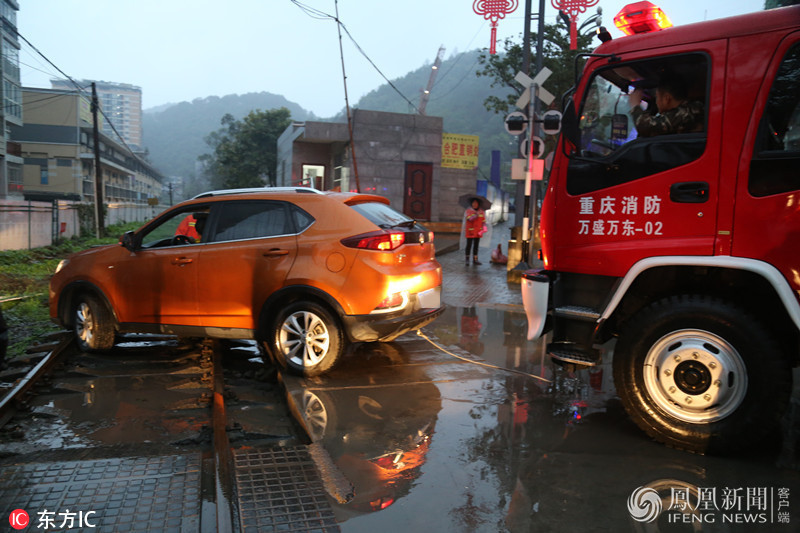 据车主钟先生介绍,事发的时候天没怎么亮还下着雨看不清路,他又不是本地人,只能跟着导航的提示走。7时20分时误将车开到了轨道上,想着自己退车出来,没想到越陷越深,然后询问铁路值守人员称8时将有火车经过,情况紧急就马上拨打119报警求救。