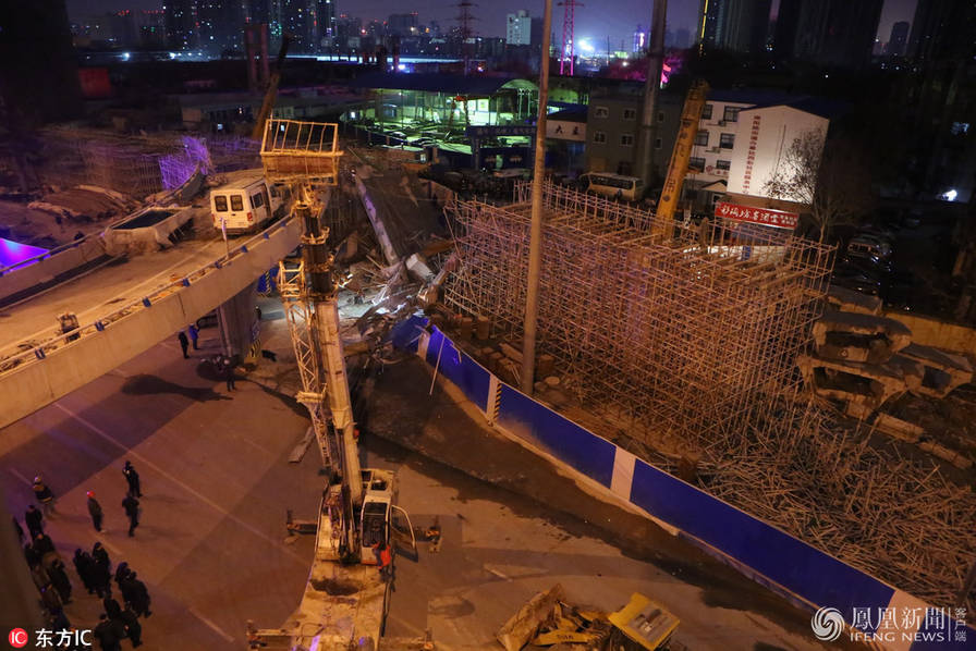 发生坍塌的立交桥为农业路高架铁路代建段,事故系旧桥拆除时支架坍塌引起的,支架连通被拆旧桥一并坍塌。