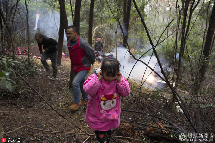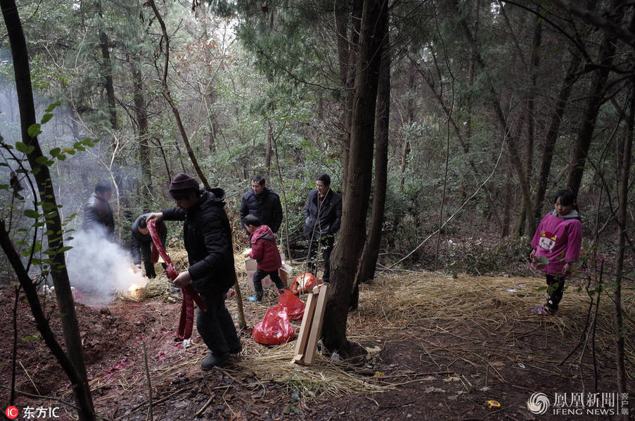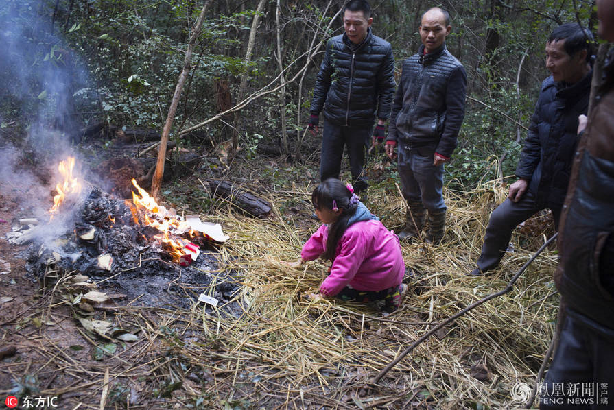 下午2点多,同村的人带着小奥兰来到后山,为张同礼烧纸钱。在农村,死人放鞭炮的习俗一直都有。大人们完成了仪式后,小奥兰来到父亲的土坟前,磕了三个头。