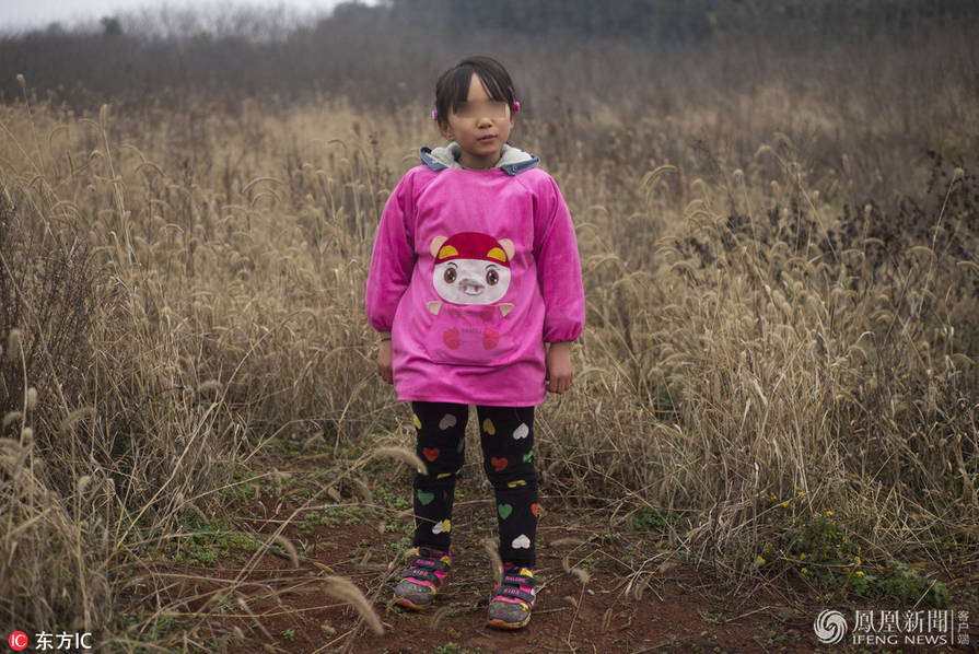 2017年1月13日,武汉江夏乌龙泉街道灵山村8岁的张奥兰(化名)在父亲的坟前磕了三个头,向父亲告别。2016年12月22日,她55岁的父亲因为肝癌去世。由于奥兰的母亲有严重精神障碍,被送往精神病院,张奥兰已经成为“事实孤儿”。供图:东方IC/马路遥