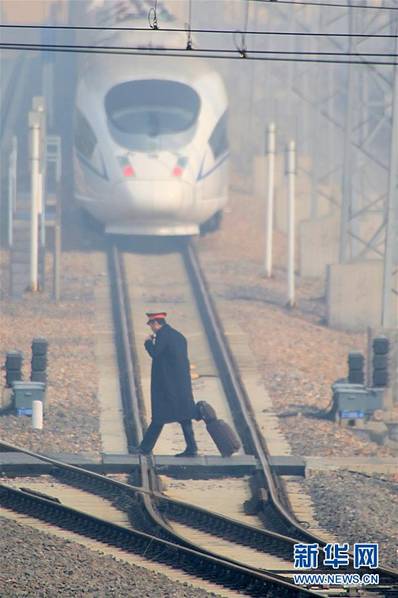 1月12日,在济南铁路局青岛动车段,一名动车司机准备出乘。