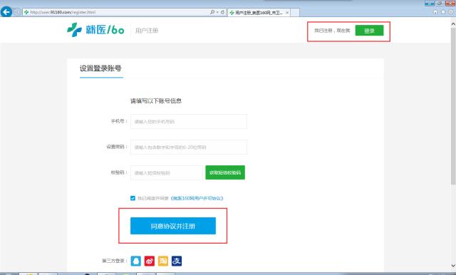填写完毕请点击“同意协议并注册”,已有账号可直接右上角登录。