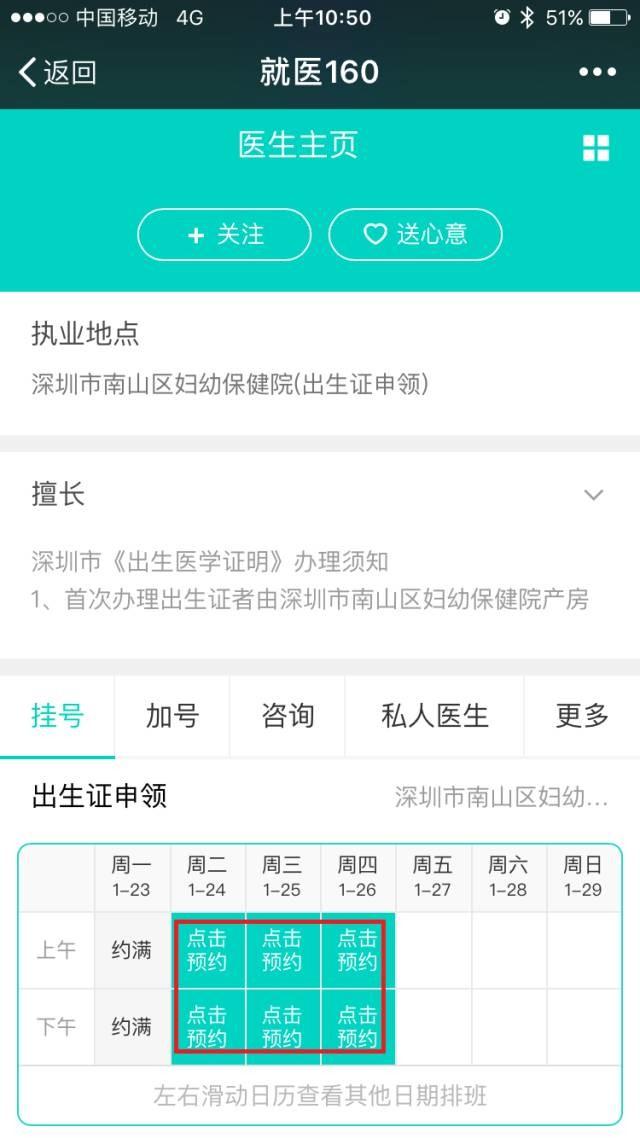 1.新生儿出生后《深圳市出生医学证明首次签发登记表》由产房签发,新生儿父母在收到表后10天内关注我院微信公众号或91160进行网上预约。