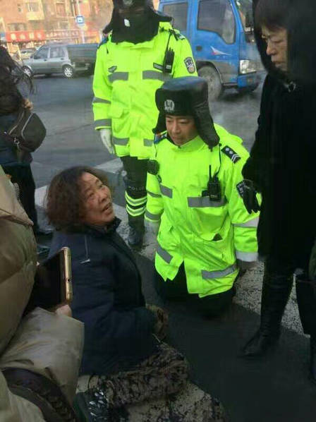 据澎湃新闻网1月17日报道,当天上午,一名身着黑衣的女子跪在马路斑马线上,在她的面前,还有一位身着交警制服的男子也同样跪在地上,与其互跪。与女子互跪的是一名协警。