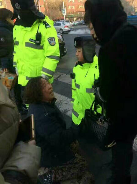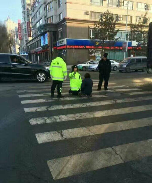 据澎湃新闻网1月17日报道,当天上午,一名身着黑衣的女子跪在马路斑马线上,在她的面前,还有一位身着交警制服的男子也同样跪在地上,与其互跪。与女子互跪的是一名协警。