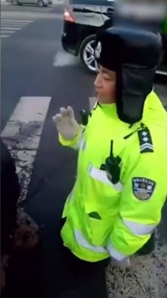 此事发生在17日上午8点45分左右,当时一辆大型货车从南往北沿着吉林大街行驶,被正在执勤的交警张警官和刘姓协警拦住。