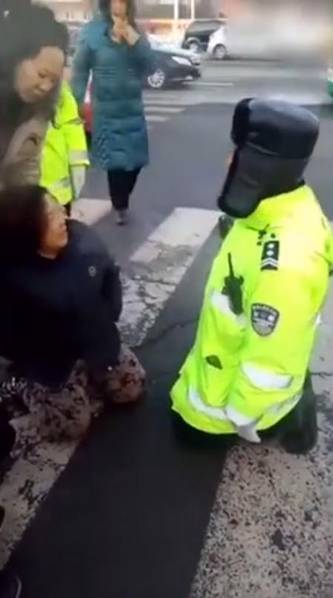 吉林一女车主与交警街头互跪