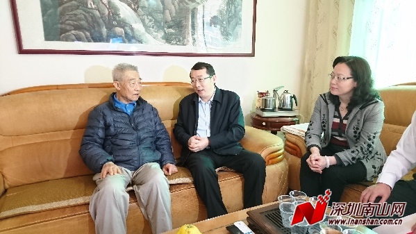 今年86岁谢英谦是在建国前入党的老党员,16岁便参加革命,战争期间参与不少战事,如今年事已高体弱多病,但仍然很关心社区发展和民生实事。王强听老人讲述了当年的革命事迹,向老人汇报了这几年南山区在城区建设、经济发展、创新创业等方面取得的巨大成就,表示南山区能有如今的辉煌,离不开像老人一样的革命老党员当年的付出和贡献,向老人表示了感谢和慰问。