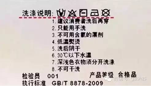 洗涤标识须按照洗涤、晾晒、熨烫等顺序标注。如果衣服吊牌上没有洗涤说明,或是洗涤说明顺序标注不正确,很有可能是因为生产厂家不正规,建议不要购买。