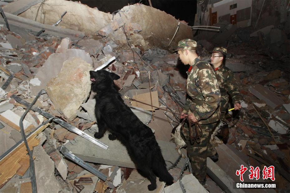经专家现场勘察和反复论证,并动用生命探测仪和搜救犬反复搜寻,确认现场无生命迹象后,决定由爆破专家对巨石进行了抬力破解,以便继续搜寻失联人员。消防供图