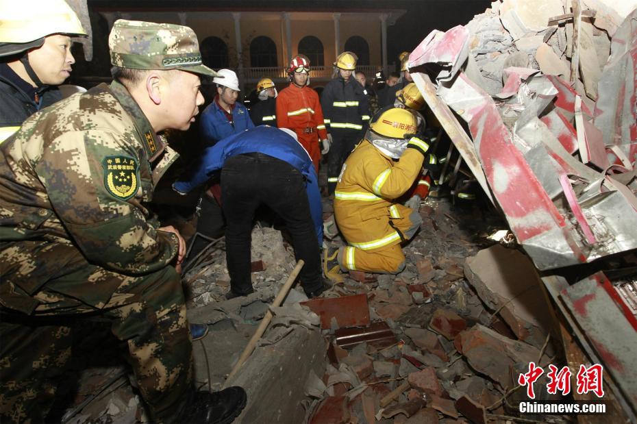 南漳突发山体滑坡掩埋一酒店部分房屋 救援现场曝光