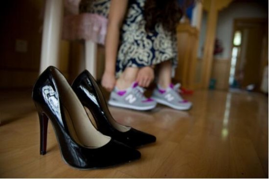 她经常要身着走秀服,手提高跟鞋,穿着运动鞋打的去活动现场,可以让自己的双脚由于久站而不至于那么疼痛肿胀。