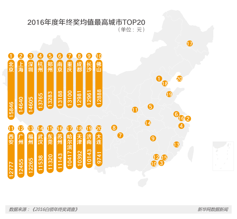 年终奖的“含金量”也和地区间的经济发展差别紧密相关,从全国范围来看,北京、上海等一线城市的年终奖平均值较高,南方城市特别是沿海城市比北方城市的年终奖更丰厚。