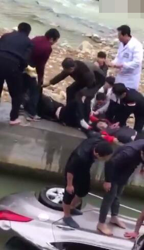 行车道距离河道水面大约1至2米深。当时村民发现意外时,私家车四轮朝天,警方和村民用绳将车两车轮固定,将车侧翻过来救人。