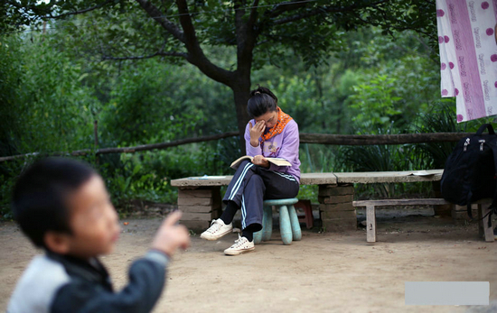 一名三年级的小朋友被爸爸送到山上来过暑假。