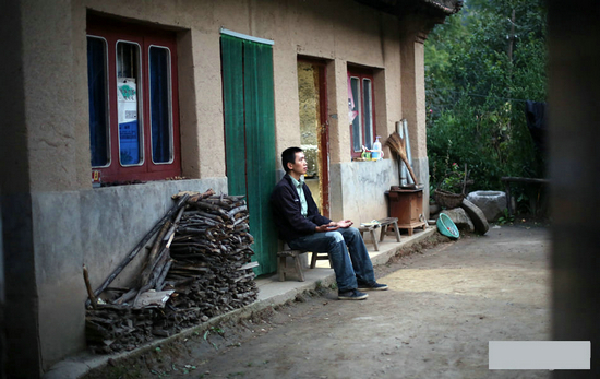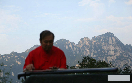 梁建平,西安人,古琴老师。2000年就上山了的梁老师说,当时向村里交了1000元的修路钱,才买了地,盖了房子,“起初条件特别艰苦,是最近三四年才接上了电。”梁老师在西安市内有房子,偶尔上山上创作,他觉得山上更有灵感。图为梁老师换好衣服,准备演奏。