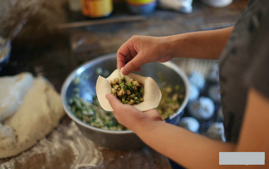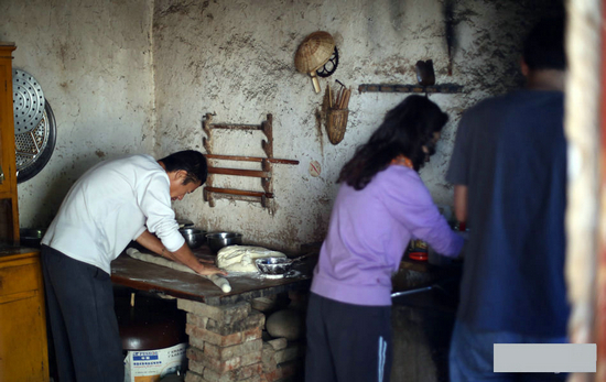 终南山上只能种一些土豆、西红柿、辣椒、茄子、玉米等这样的蔬菜,面和米只能在西安市内买来,然后背到山上来。这是大家在做包子。