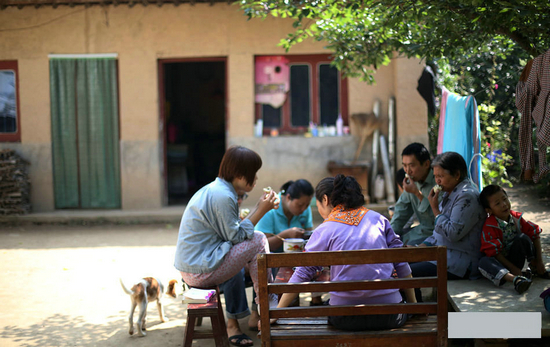 在山上,因为做饭比较麻烦,大家一天只吃两顿饭。这是早上的一顿。