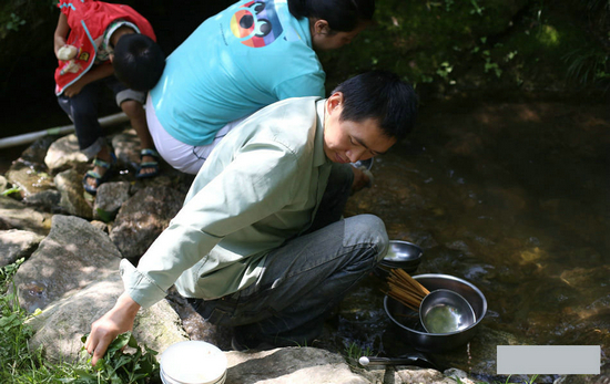饭后,用泉水和树叶洗碗。