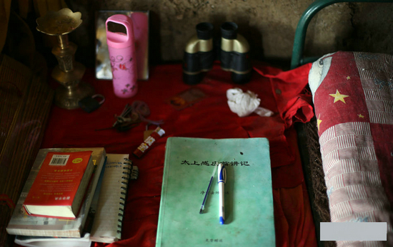王彦伟,黑龙江省富裕人,父母过世了,有4个姐姐,但也基本不联系了。王彦伟做过煤矿、金矿、建筑队的工人,不过这些工作都不是他想要的。84年的他,最开始只是感觉到这个社会现在太复杂,在网上看到终南山,于是想来问道,“我以前就在家里那边的山上采药,卖钱,把药晒干了就卖给收药的。终南山比东北的山清静多了,我想学道,可现在还没拜到老师,打算采一段时间药,下去拜个师傅。”小王说,一辈子就都在这个山上了,不准备下山了。