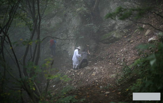 这里的海拔有2000多米,山间烟雾缭绕,山路很滑很潮湿,下面就是悬崖。