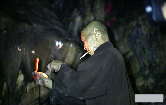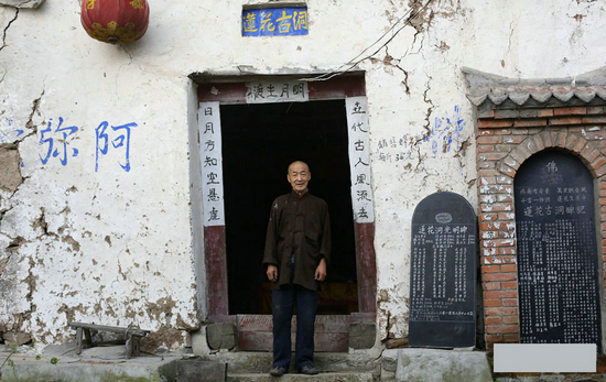 这里就是佛教里提到的终南山莲花洞,印光法师当年就是在此拜道纯和尚为师,剃度为僧。时至今日,闻风向道者依然络绎不绝。图为莲花洞看庙的老人。