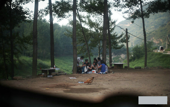 终南山翠华山脚下有很多吕氏鳟鱼农家院,图为正在聚会的游客。