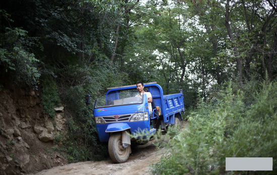 去往终南山的山路崎岖不平,远处传来一阵轰隆声,一同上山的朋友让我们躲在路两边,一辆山中修庙的工程车一颠一跛的开下来。这车一般是拉满沙石上去,空车下来。