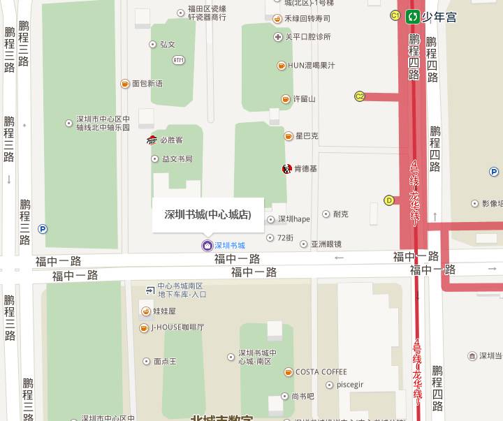 北邻莲花山,南接深圳市民中心,西邻深圳音乐厅、深圳图书馆,东毗深圳市少年宫,它是书城的旗舰店,同样也是全国最大的书城。