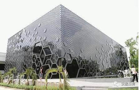 外形就像一个黑色蜂巢!这样一座以先锋设计为主题的美术馆,在2008年9月1日就已经在华侨城正式落地了。