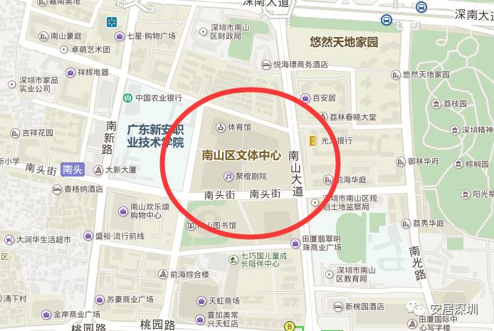 位于深圳市南山区中部,邻近南山区政府与荔香公园,处于深南大道以南,桃园路以北,南山大道以西,南新路以东