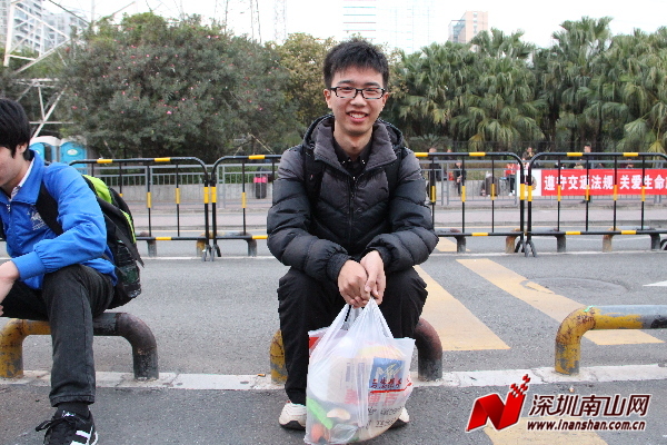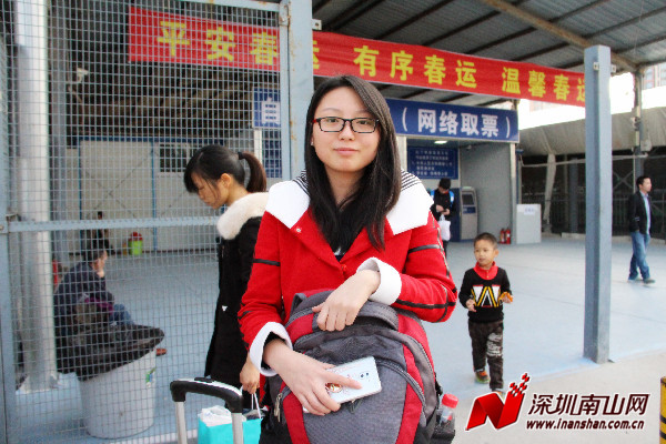 来自湖北恩施的陈先生只带了一些吃食上路,显得格外轻装简行。陈先生说自己刚到深圳一个月,现在在南山一家科技公司实习,准备回位于湖北恩施的家里过年。“明年就准备毕业来深圳工作了,现在就当是以后春运的预习演练吧!”陈先生笑着对记者说。