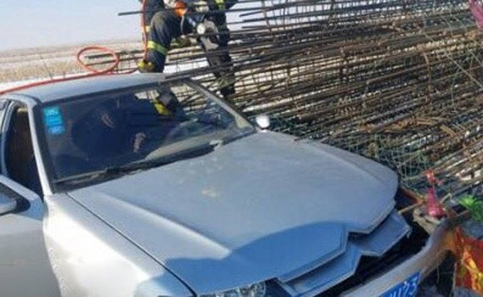 2017年1月23日,吉林省长春市,一名男子在这一天遇到了悲剧,他在驾驶一辆银色雪铁龙行驶到农安县巴吉垒镇至龙王乡公路的时候,遇到突发状况紧急刹车,车辆横向漂移撞到了道旁的钢筋堆垛上,惨遭“钢筋穿颅”。