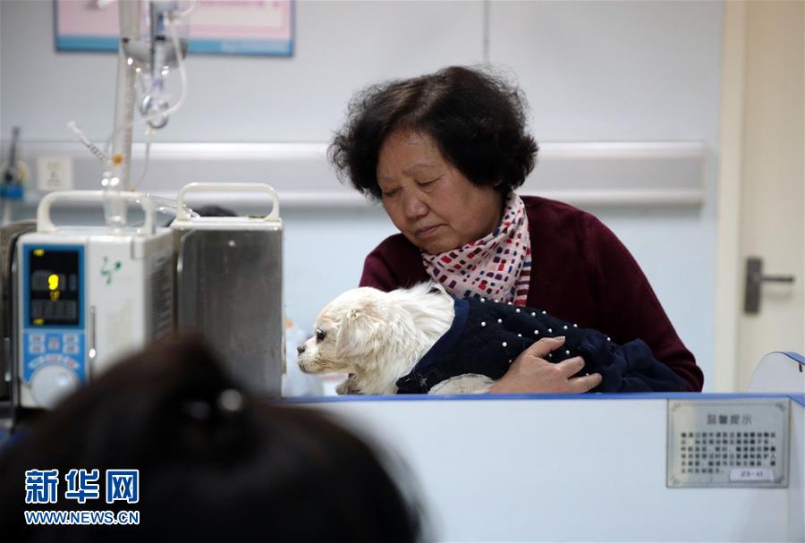 1月31日,在北京观赏动物医院,一名女士抱着自己正打点滴的宠物狗。随着家养宠物的数量增多,城市中的宠物医院也越来越多。2017年春节期间,北京观赏动物医院每天仍有医生护士值班,为在春节假期内不幸患病的宠物治疗疾病。新华社记者才扬摄