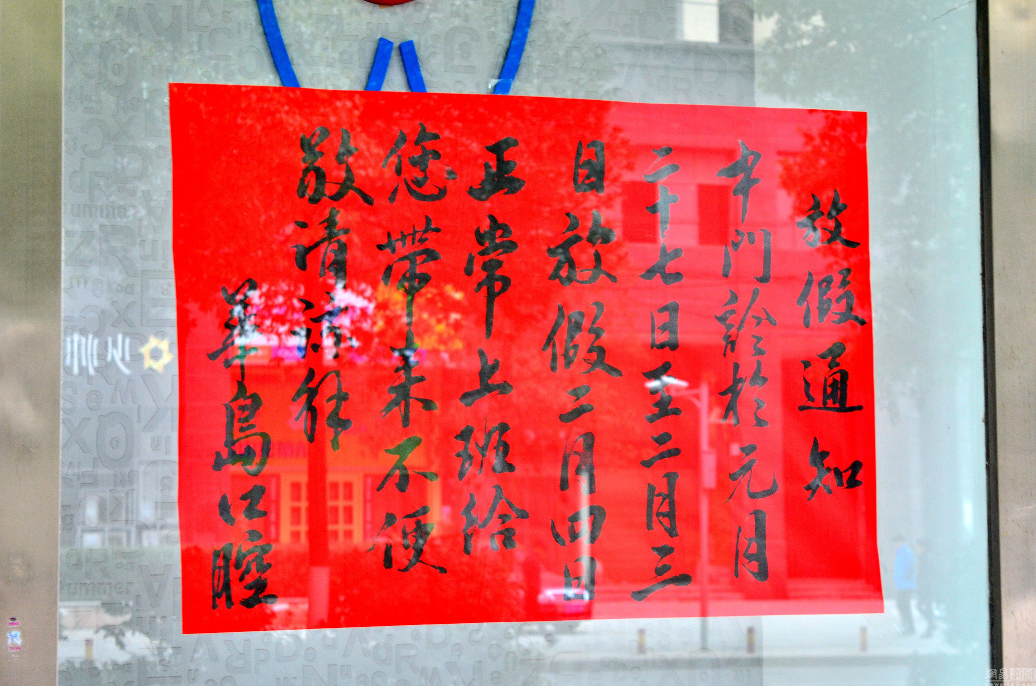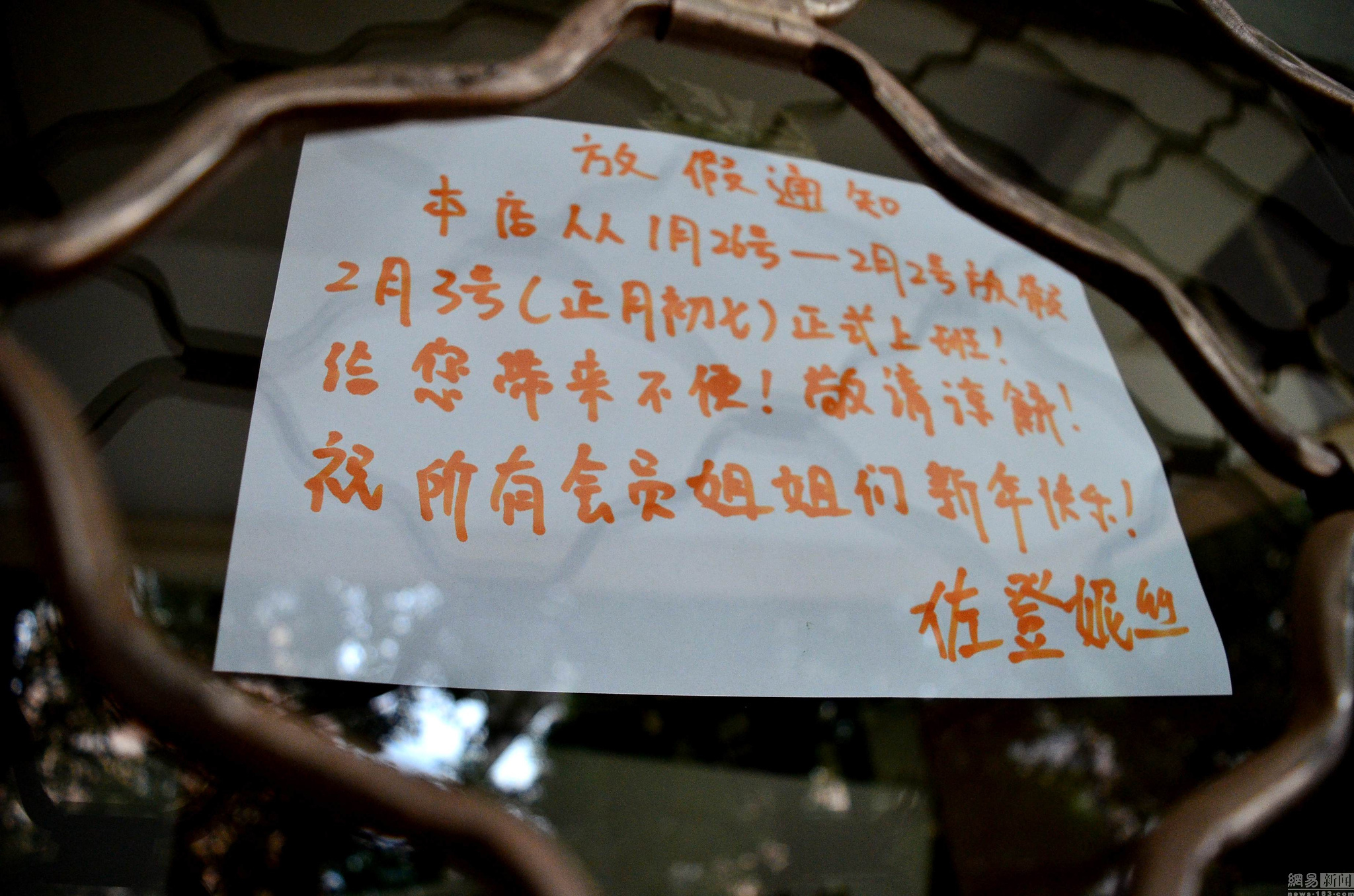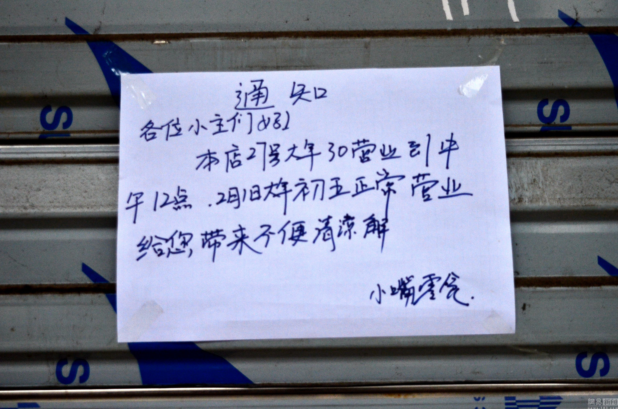2017年1月30日,湖南长沙一商家张贴的春节放假提示。