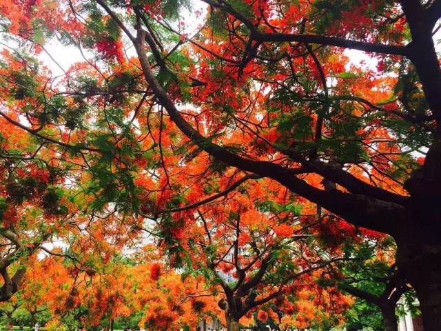 凤凰花即凤凰木的花。凤凰花树冠高大,五月华侨城生态广场开花至夏末,花五瓣,花大美丽,花期花红叶绿,满树如火,富丽堂皇,被誉为世上色彩最艳丽的树木之一。5月的深圳,很多地方都能欣赏到,简直美得不像话。