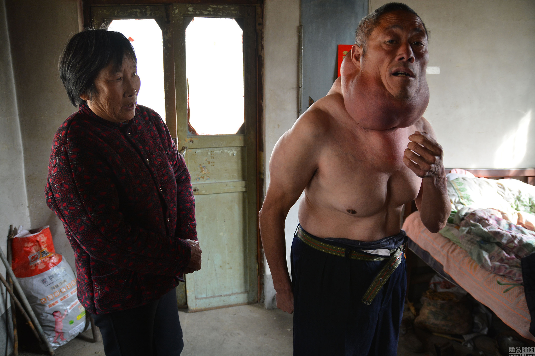 刘治河说,前些年,脂肪瘤小的时候,干些农活还是可以的。平时村民们盖房什么的,他可以干点小工。这两年,脂肪瘤越长越大,现在比头都大了。他全身上下都是脂肪瘤,肌肉都萎缩,没有力气干活。走路的时候,时间一长就喘不上气来。因为干不了农活,现在他把全家四口人的几亩地,以低价承包出去了。脂肪瘤让刘治河痛苦无比。一到阴天下雨的,他脖子上的脂肪瘤就胀的的疼。现在不仅没有力气干活,连晚上睡觉也是个难事。因为脖子上的脂肪瘤压迫气管,晚上经常睡觉的时候就憋醒了。而且也躺不下,只能半躺着。前几年在帮助村民盖房子的时候,他还把腰椎和肋骨摔骨折了,到现在还有后遗症。图/视觉中国
