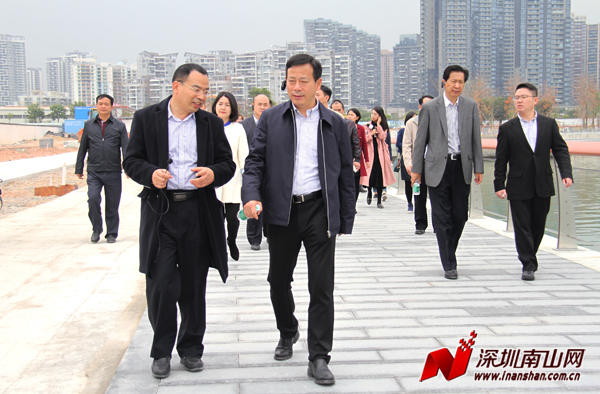 南山区委常委、常务副区长王立德一行实地查看了深圳湾滨海休闲带西段D段的建设情况,区城管局负责人汇报了相关情况。