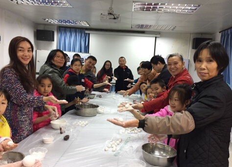 当社工把材料分发到每个家庭小组时,小朋友们都伸出白净净的小手跃跃欲试。包汤圆正式开始时,只见爸爸妈妈和奶奶认真地给孩子打下手,将孩子和糯米粉所需的水递到孩子手中,并提醒孩子注意水温、怎样搓糯米粉,这看似简单的一递一接,一沟一通,都透着孩子与父母、奶奶无间的亲密,温馨的气流包裹着在场的每一个人。最后在大家搓、捏、按、揉后,一块块白白的糯米面团在参与者手中形成一个个又圆又大的汤圆。活动现场一片欢声笑语,大家还纷纷合影留念。
