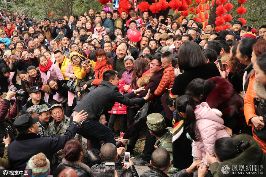 2017年2月12日,四川省德阳市。正月十六,一年一度的广汉保保节拉开大幕。大量游客涌入广汉市区狂欢,感受300多年来传承至今的民俗节日。“在广汉,没过正月十六,那都不算过完年。”保保是四川方言,意为为了保佑小孩儿长大,找命好的人做干爹干妈。一年一度的“保保节”吸引了20万余人涌入广汉。CFP