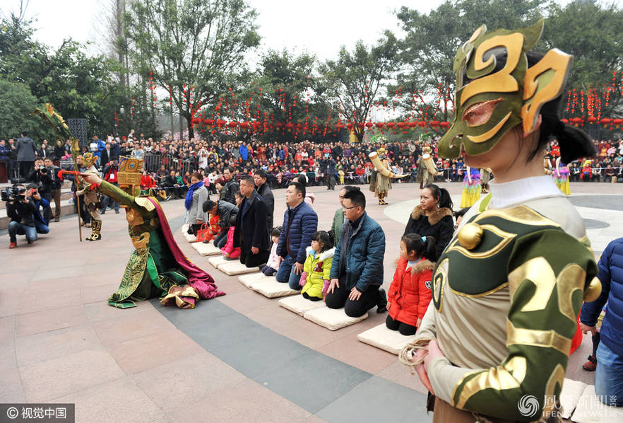 2017年2月12日,四川省德阳市。正月十六,一年一度的广汉保保节拉开大幕。大量游客涌入广汉市区狂欢,感受300多年来传承至今的民俗节日。“在广汉,没过正月十六,那都不算过完年。”保保是四川方言,意为为了保佑小孩儿长大,找命好的人做干爹干妈。一年一度的“保保节”吸引了20万余人涌入广汉。CFP